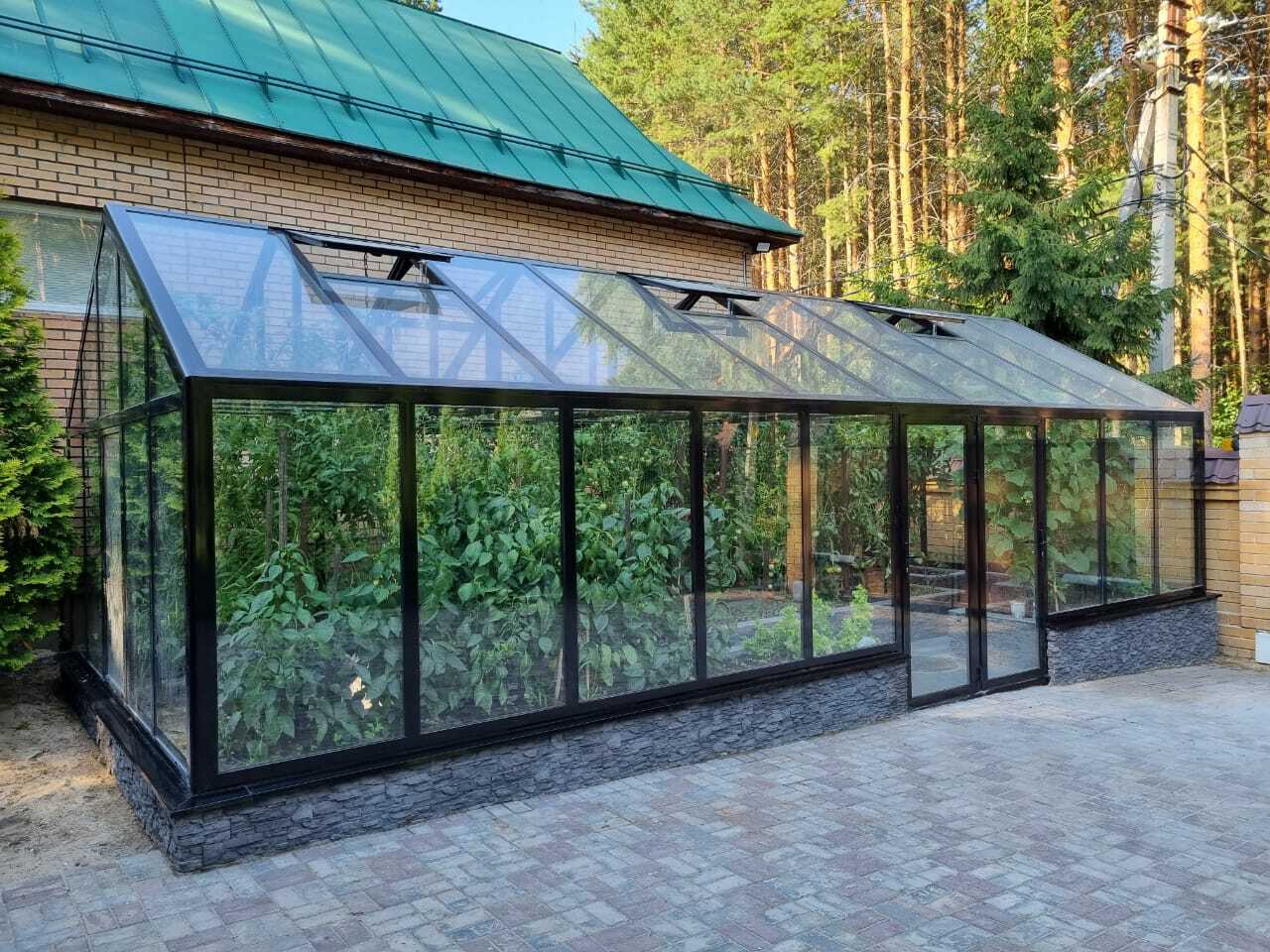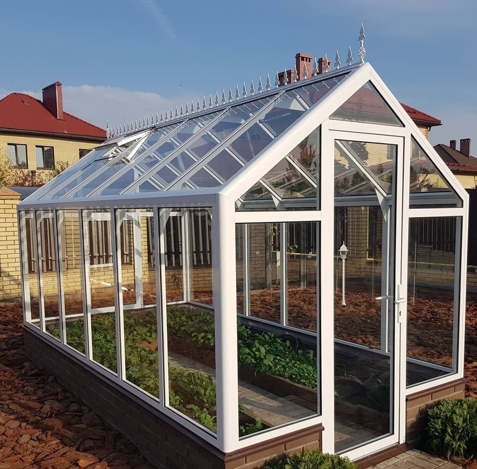 1. Эстетичность. Стеклянная теплица представляет собой сочетание алюминиевого профиля и стекла с элементами декора. Она прекрасно впишется в архитектурный ансамбль вашего загородного участка, подчеркивая его красоту и ухоженность.